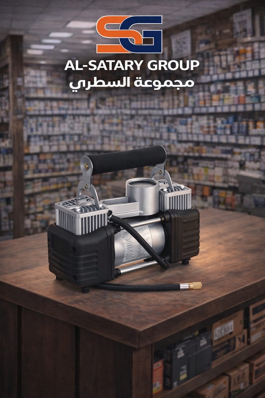 منفاخ سيارات قوي وعالي التحمل، مناسب لنفخ إطارات السيارات بسرعة وكفاءة، سهل الحمل والاستخدام.