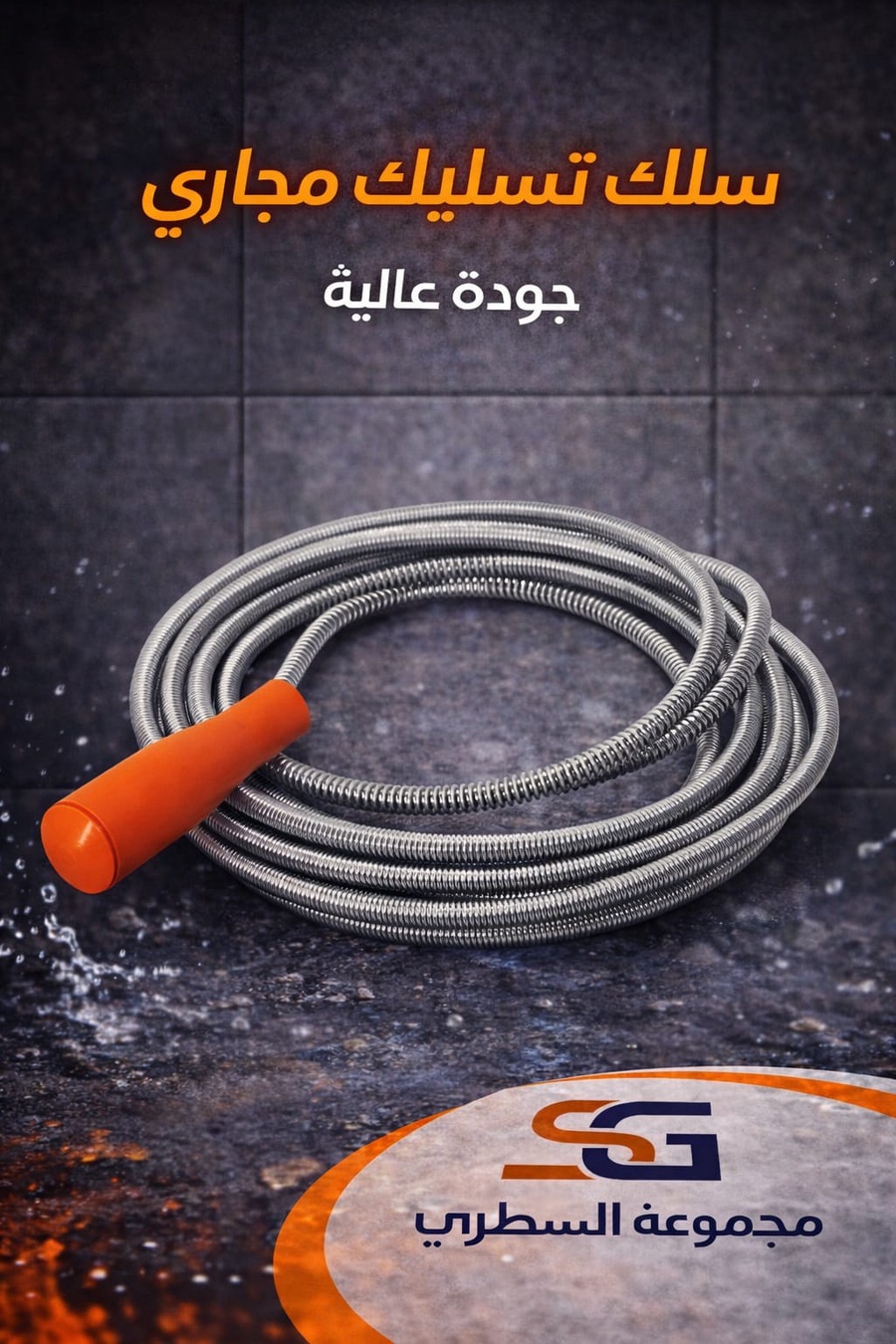 زمبرك تسليك مجاري بطول 5 متر، قوي ومرن، مثالي لفتح الانسدادات في المغاسل والمجاري.