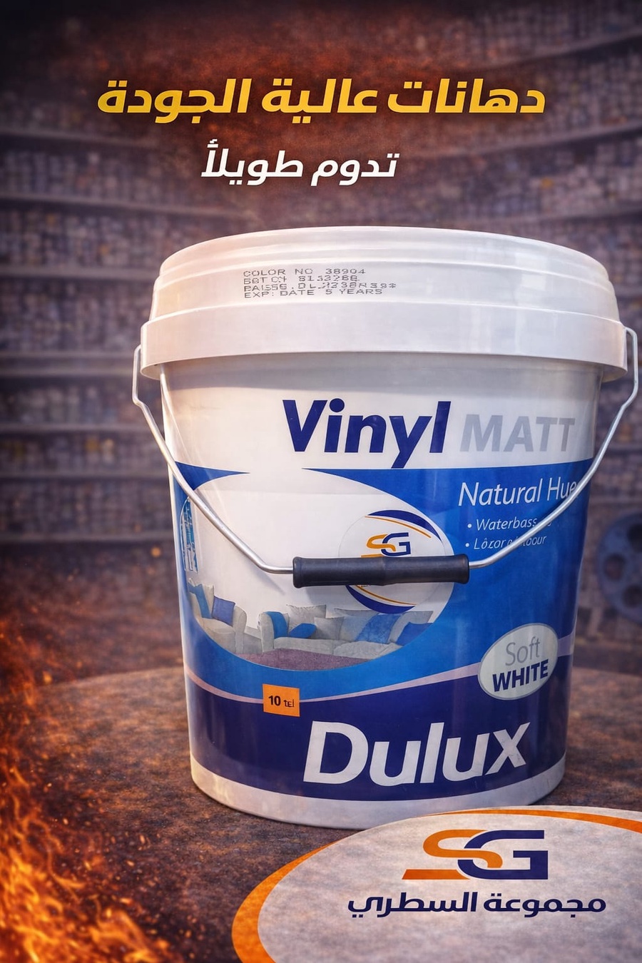 دهان ديلوكس أبيض مطفي عالي الجودة، تغطية ممتازة ومظهر ناعم يدوم طويلًا، مناسب للجدران الداخلية.