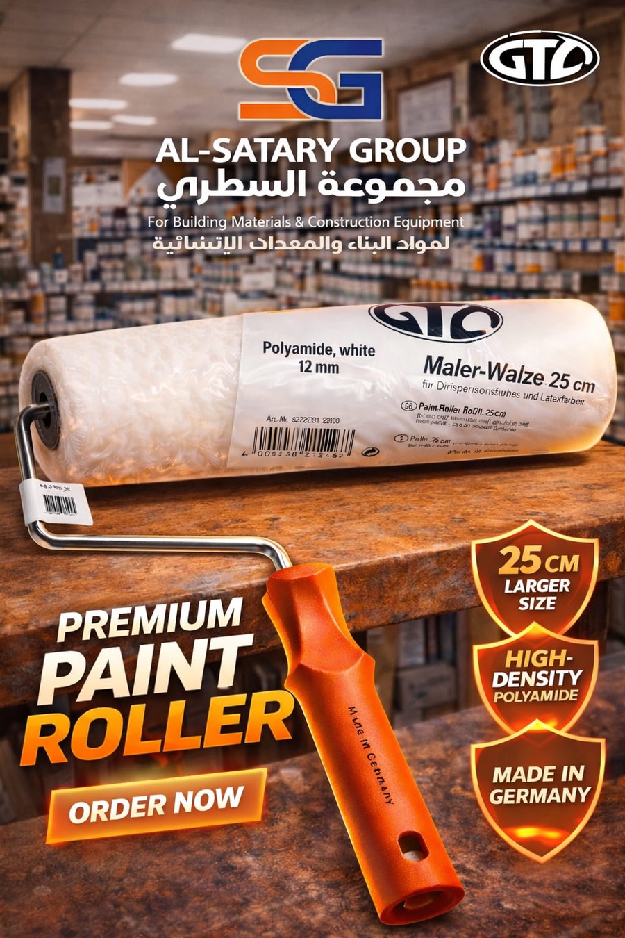 رول دهان ألماني أصلي بجودة عالية، توزيع متساوي للدهان ونتيجة ناعمة، مناسب لجميع أعمال الطلاء.