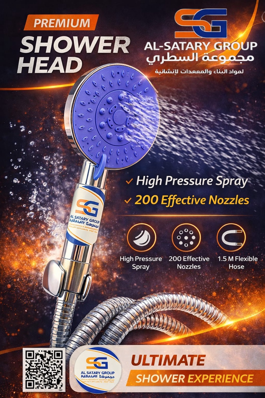 دش تركي كروم مكفول برش قوي، تصميم عملي مع 200 فتحة رش وتوزيع ماء ممتاز لتجربة استحمام مريحة.